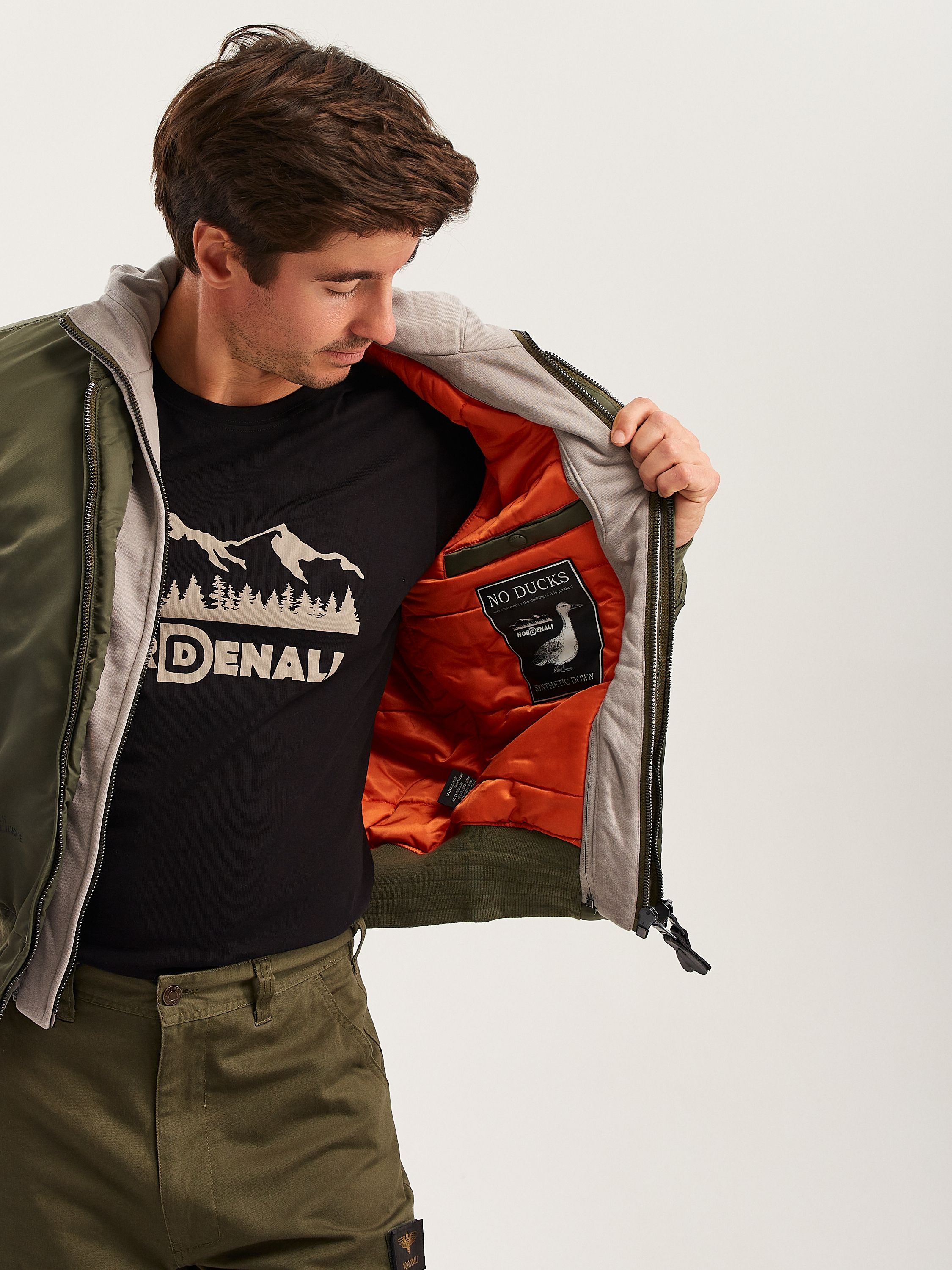 Куртка «Бомбер» MA-1 WING от бренда NORD DENALI представляет собой образец классического дизайна, выполненный из нейлона. Она оснащена надёжной металлической молнией, а также имеет съёмный капюшон-манишку и оригинальные принты.